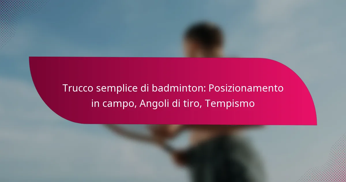 Migliorare le abilità nel badminton implica padroneggiare il posizionamento in campo, gli angoli di tiro e il tempismo. Questi elementi sono cruciali per un gioco efficace e possono influenzare significativamente gli esiti delle partite.